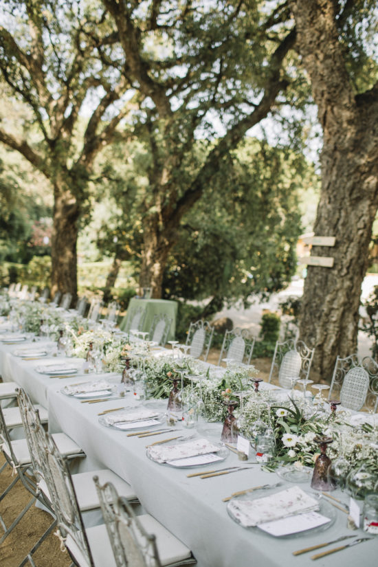 Una posada amb escena impecable a Masia Casa del Mar, amb estels i corals de decoració de la mà d'Atmosfera, mobiliari i parament d'Options.